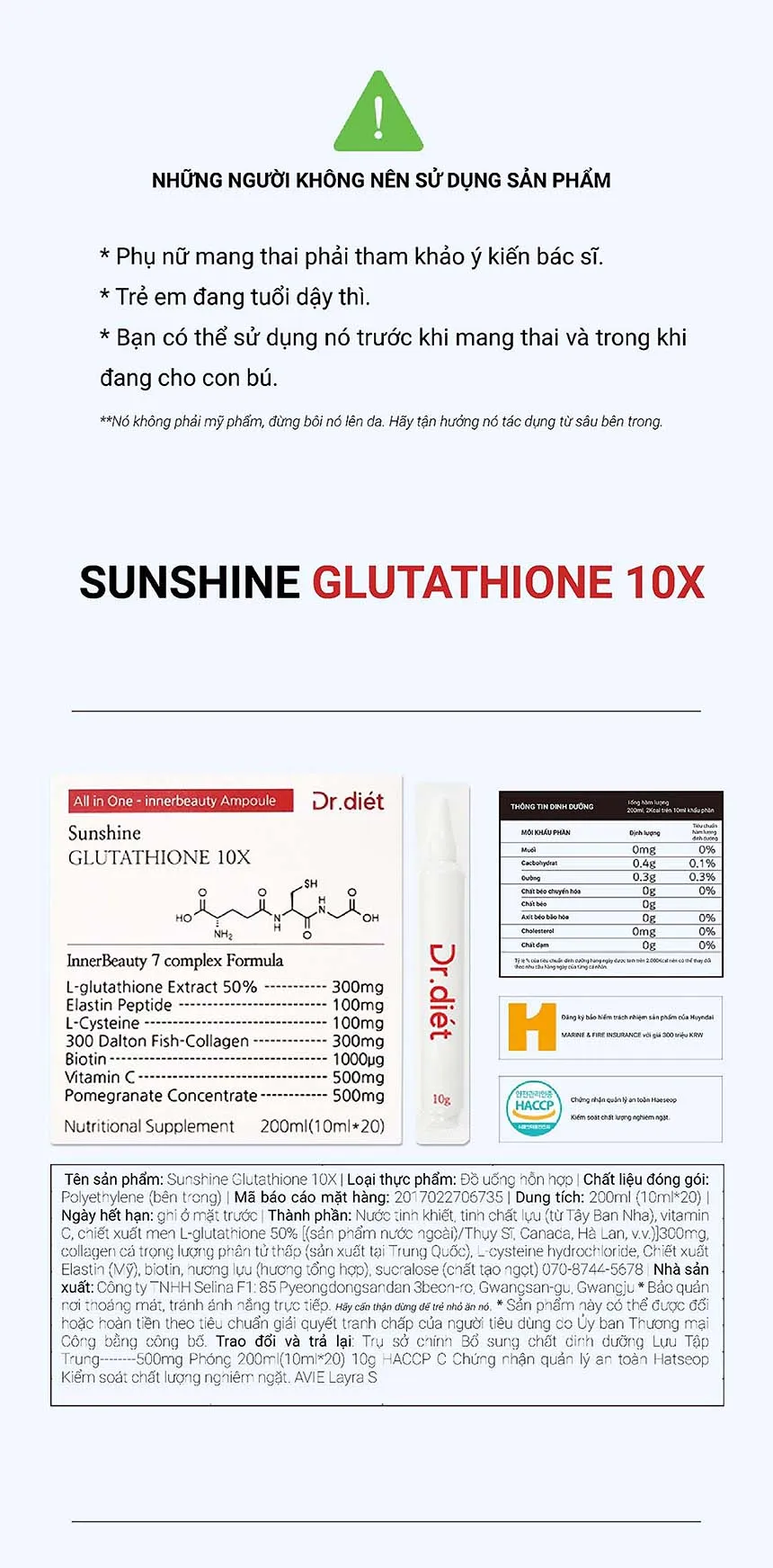 Sunshine Glutathione Effect 10X All-in-one Inner Beauty Dr. Diet Ampoule Sunshine